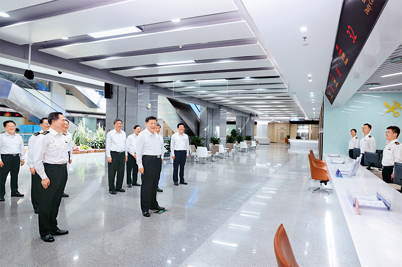 2024年10月15日至16日,中共中央總書記、國家主席、中央軍委主席習近平在福建考察。這是16日上午,習近平在中國(福建)自由貿易試驗區廈門片區考察時,同綜合服務大廳窗口工作人員親切交流。新華社記者 鞠鵬/攝