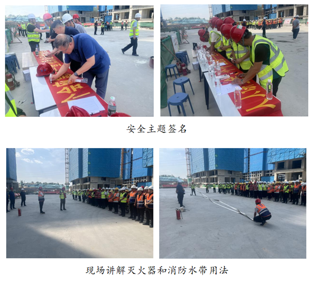 活動期間,大家積極參與安全主題簽名和主題宣誓,講解員現場講解消防水帶和滅火器的用法,解答安全生產相關知識,并開展了消防實戰演練。集團公司分管安全生產的總經理助理黃志澎作重要講話,強調了安全生產的重要性,要求各單位扎實做好今年防汛工作,并為一線工人發放防暑降溫藥品和安全知識手冊200套。